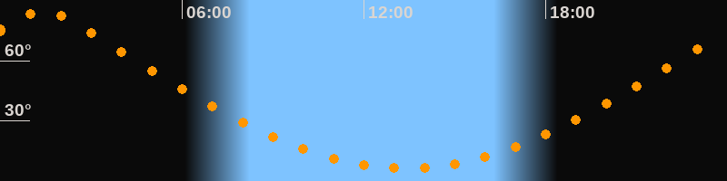 | Höchster Stand (Kulmination) | 01:26 Uhr (h = 85°) |