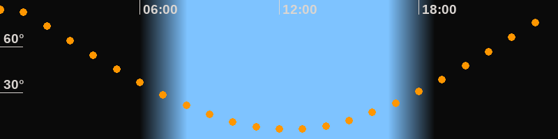 | Höchster Stand (Kulmination) | 00:20 Uhr (h = 85°) |