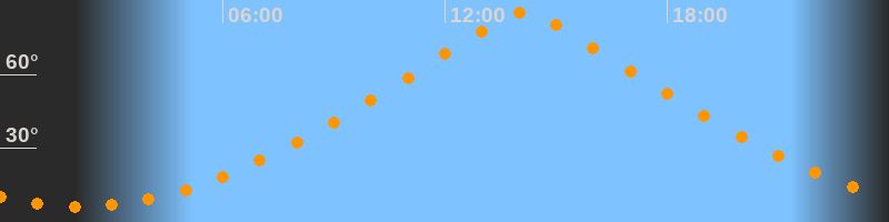 | Höchster Stand (Kulmination) | 14:08 Uhr (h = 85°) |