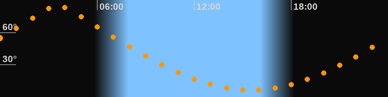 | Höchster Stand (Kulmination) | 03:34 Uhr (h = 85°) |