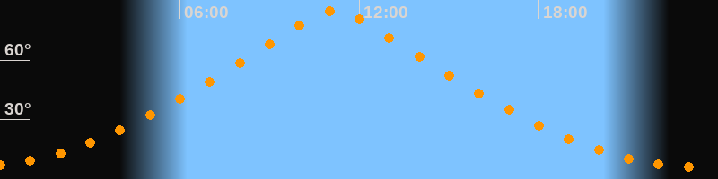 | Höchster Stand (Kulmination) | 11:10 Uhr (h = 85°) |