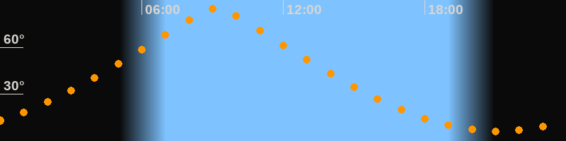 | Höchster Stand (Kulmination) | 09:08 Uhr (h = 85°) |