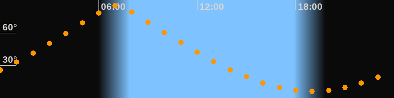 | Höchster Stand (Kulmination) | 07:02 Uhr (h = 85°) |