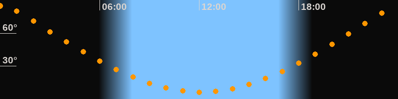 | Höchster Stand (Kulmination) | 00:04 Uhr (h = 85°) |