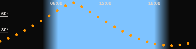 | Höchster Stand (Kulmination) | 08:53 Uhr (h = 85°) |