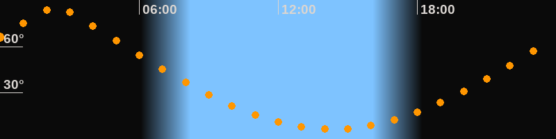 | Höchster Stand (Kulmination) | 02:23 Uhr (h = 85°) |
