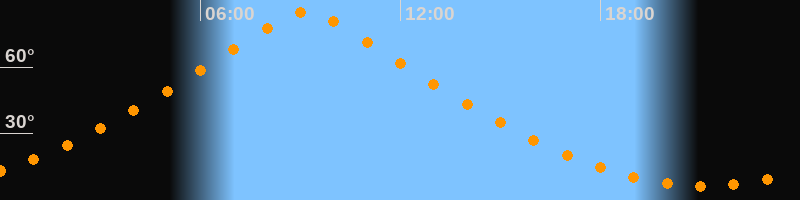 | Höchster Stand (Kulmination) | 09:10 Uhr (h = 85°) |