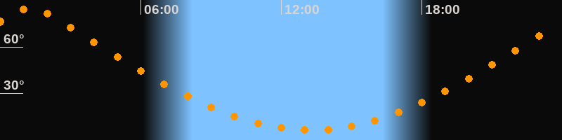 | Höchster Stand (Kulmination) | 01:18 Uhr (h = 85°) |