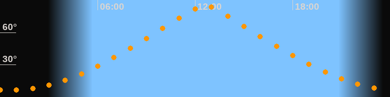 | Höchster Stand (Kulmination) | 12:36 Uhr (h = 85°) |