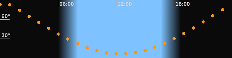 Höchster Stand (Kulmination)00:25 Uhr (h = 85°)