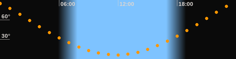 | Höchster Stand (Kulmination) | 23:47 Uhr (h = 85°) |