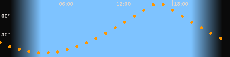 | Höchster Stand (Kulmination) | 16:30 Uhr (h = 85°) |