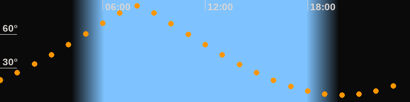 | Höchster Stand (Kulmination) | 07:59 Uhr (h = 85°) |