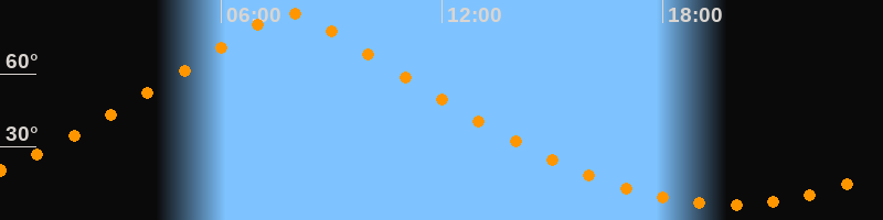 | Höchster Stand (Kulmination) | 07:51 Uhr (h = 85°) |