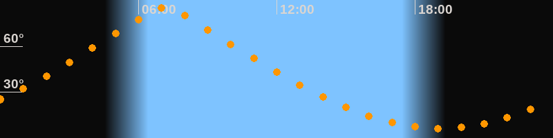 | Höchster Stand (Kulmination) | 07:08 Uhr (h = 85°) |