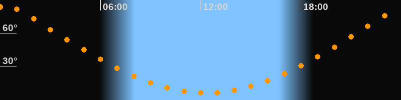 | Höchster Stand (Kulmination) | 00:19 Uhr (h = 85°) |