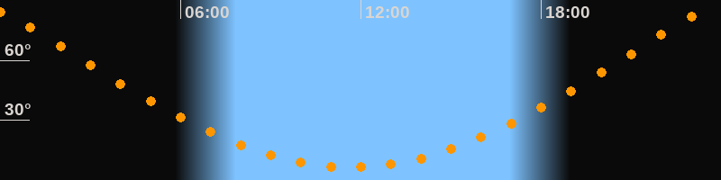 | Höchster Stand (Kulmination) | 23:39 Uhr (h = 85°) |