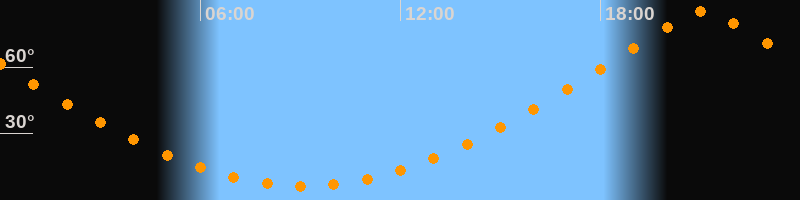 | Höchster Stand (Kulmination) | 21:06 Uhr (h = 85°) |