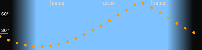 | Höchster Stand (Kulmination) | 16:43 Uhr (h = 85°) |
