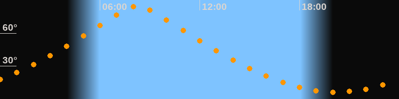 | Höchster Stand (Kulmination) | 08:15 Uhr (h = 85°) |
