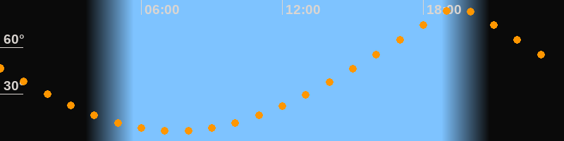 | Höchster Stand (Kulmination) | 19:29 Uhr (h = 85°) |