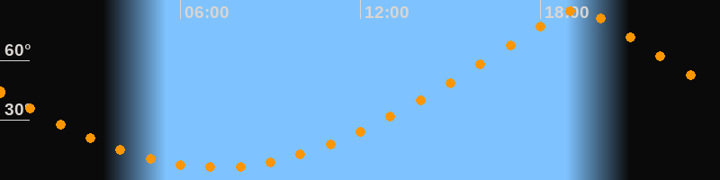 | Höchster Stand (Kulmination) | 19:13 Uhr (h = 85°) |