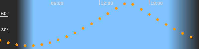 | Höchster Stand (Kulmination) | 15:25 Uhr (h = 85°) |