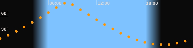 | Höchster Stand (Kulmination) | 08:16 Uhr (h = 85°) |