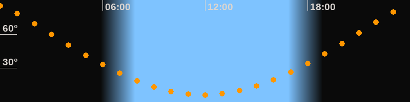 | Höchster Stand (Kulmination) | 23:53 Uhr (h = 85°) |
