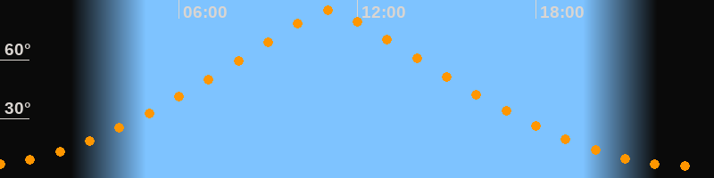 | Höchster Stand (Kulmination) | 11:03 Uhr (h = 85°) |