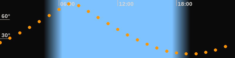 | Höchster Stand (Kulmination) | 07:19 Uhr (h = 85°) |