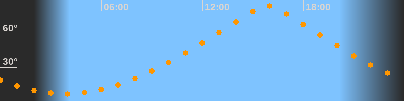 | Höchster Stand (Kulmination) | 15:51 Uhr (h = 85°) |