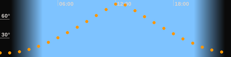 | Höchster Stand (Kulmination) | 12:23 Uhr (h = 85°) |