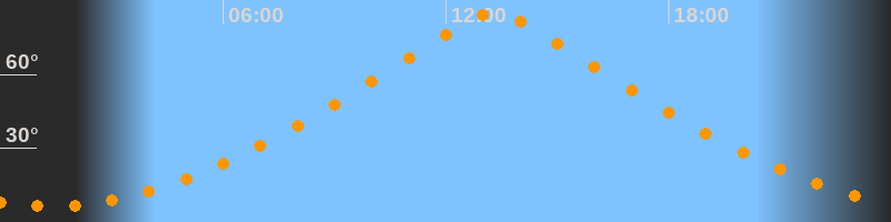 | Höchster Stand (Kulmination) | 13:19 Uhr (h = 85°) |