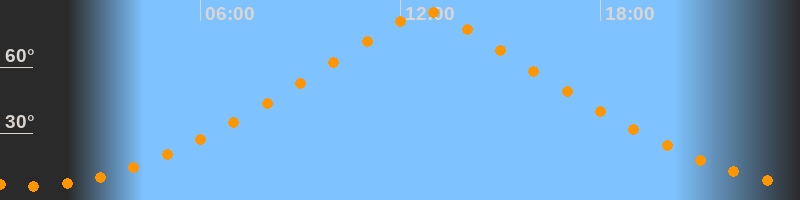 | Höchster Stand (Kulmination) | 12:48 Uhr (h = 85°) |