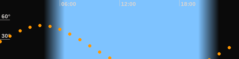 | Aufgang | 21:03 Uhr im Osten (αAz = 70°) |