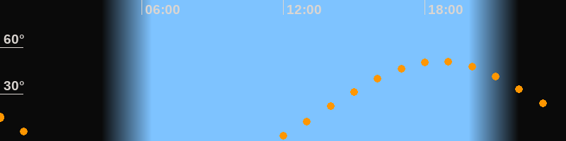 | Aufgang | 11:33 Uhr im Osten (αAz = 70°) |