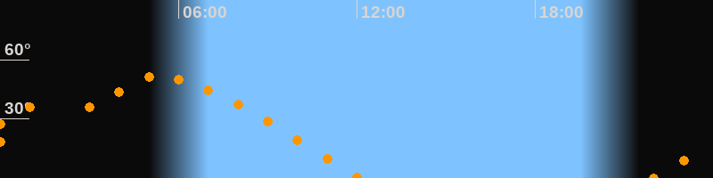 | Aufgang | 21:57 Uhr im Osten (αAz = 70°) |