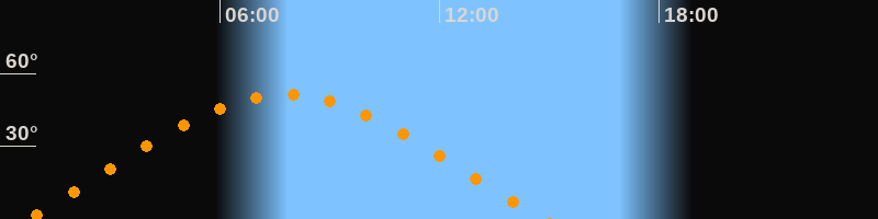 | Aufgang | 00:39 Uhr im Osten (αAz = 70°) |