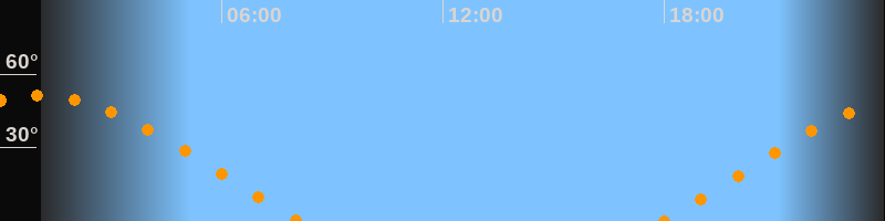 | Untergang | 08:07 Uhr im Westen (αAz = 290°) |