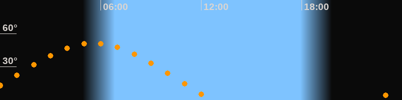 | Aufgang | 22:28 Uhr im Osten (αAz = 70°) |