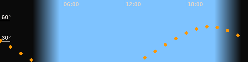 | Aufgang | 13:14 Uhr im Osten (αAz = 70°) |
