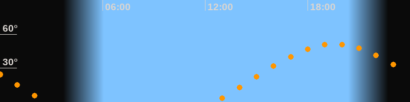 | Aufgang | 12:31 Uhr im Osten (αAz = 70°) |