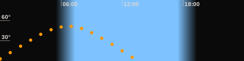 | Aufgang | 23:31 Uhr im Osten (αAz = 70°) |