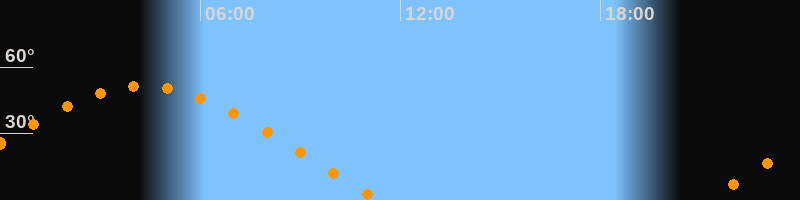 | Untergang | 11:20 Uhr im Westen (αAz = 290°) |