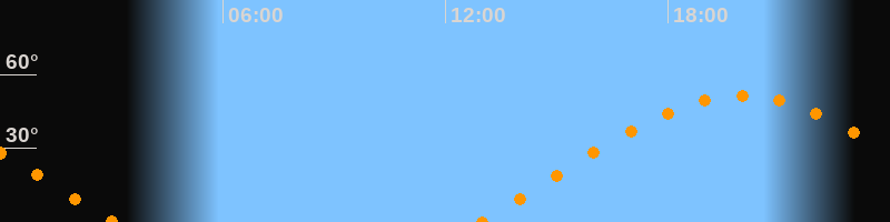 | Untergang | 03:06 Uhr im Westen (αAz = 290°) |
