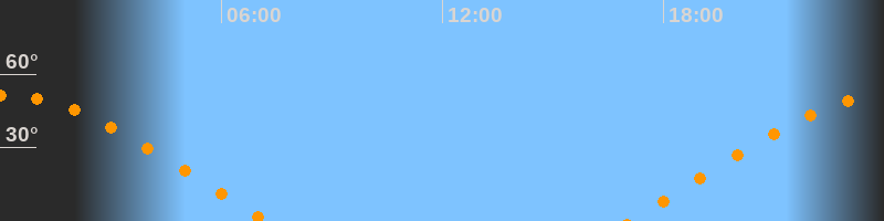 | Untergang | 07:15 Uhr im Westen (αAz = 290°) |