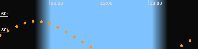 | Untergang | 11:26 Uhr im Westen (αAz = 290°) |