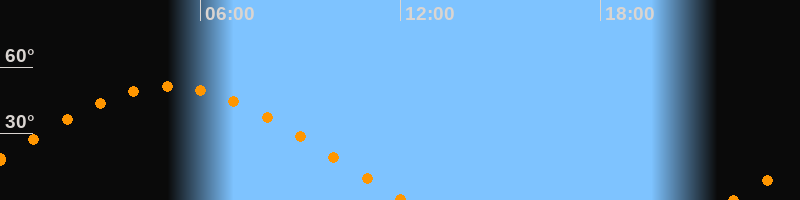 | Aufgang | 21:56 Uhr im Osten (αAz = 70°) |