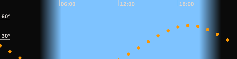 | Aufgang | 12:05 Uhr im Osten (αAz = 70°) |
